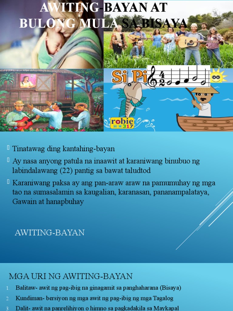 Awiting Bayan At Bulong Sa Kabisayaan Pptx Awiting Bayan At Bulong Sa Kabisayaan Awiting Bayan Mga Awiting Sumasalamin Sa Araw Araw Na Pamumuhay Ng Course Hero