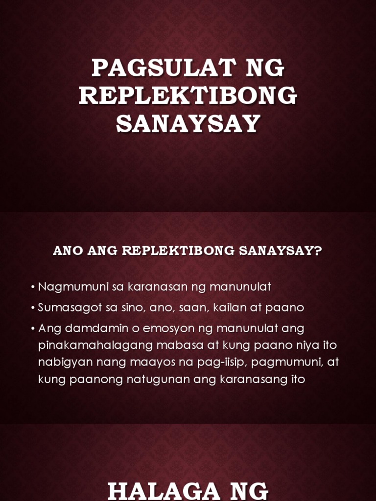 L9 Pagsulat Ng Replektibong Sanaysay