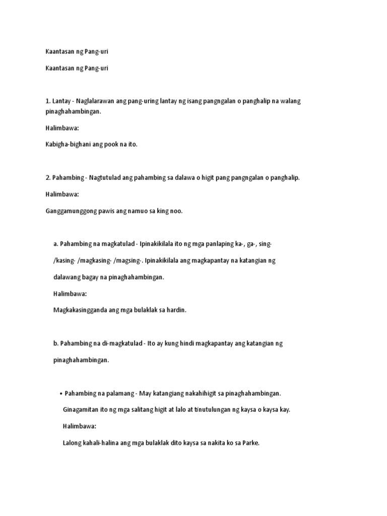 Halimbawa Ng Pang Uri Uri Ng Pang Uri Antas Atbp
