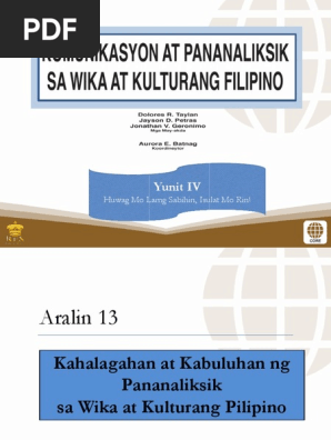 Aralin 13 Kahalagahan At Kabuluhan Ng Pananaliksik Sa Wika At Kulturang Pilipino