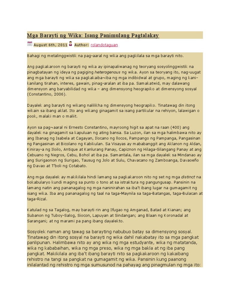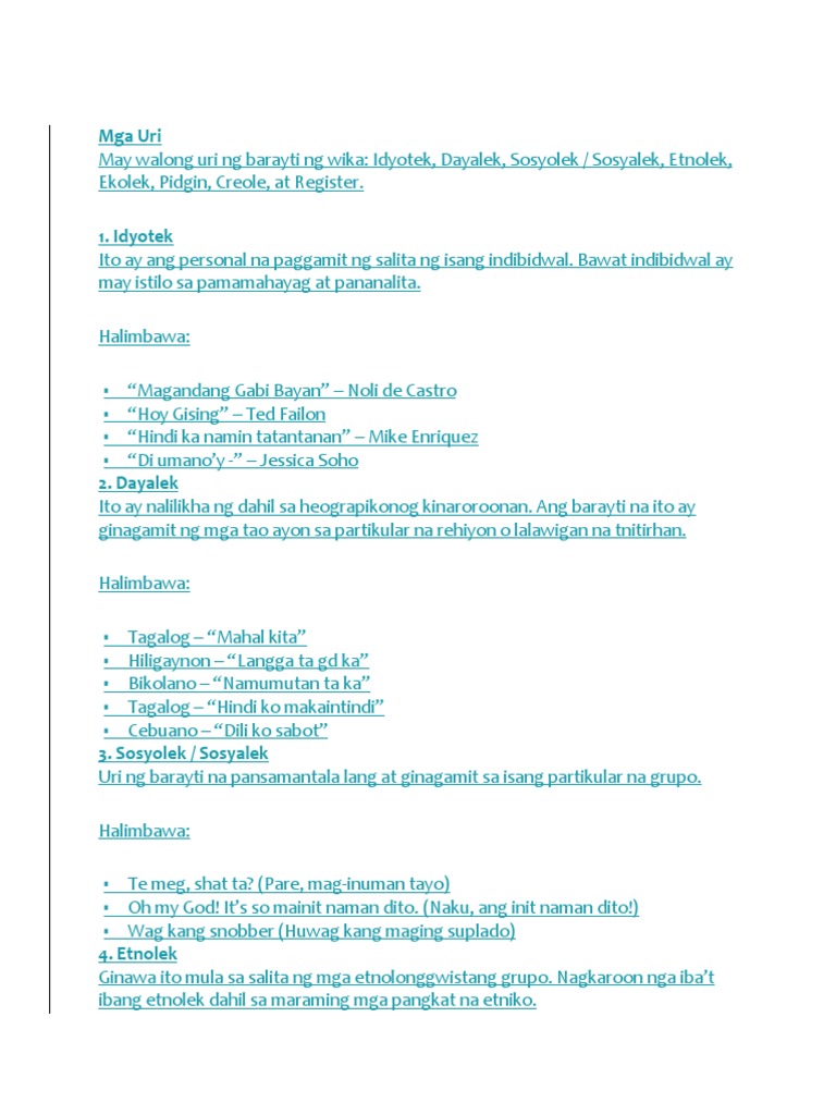 Mga Uri Ng Barayti Ng Wika Docx