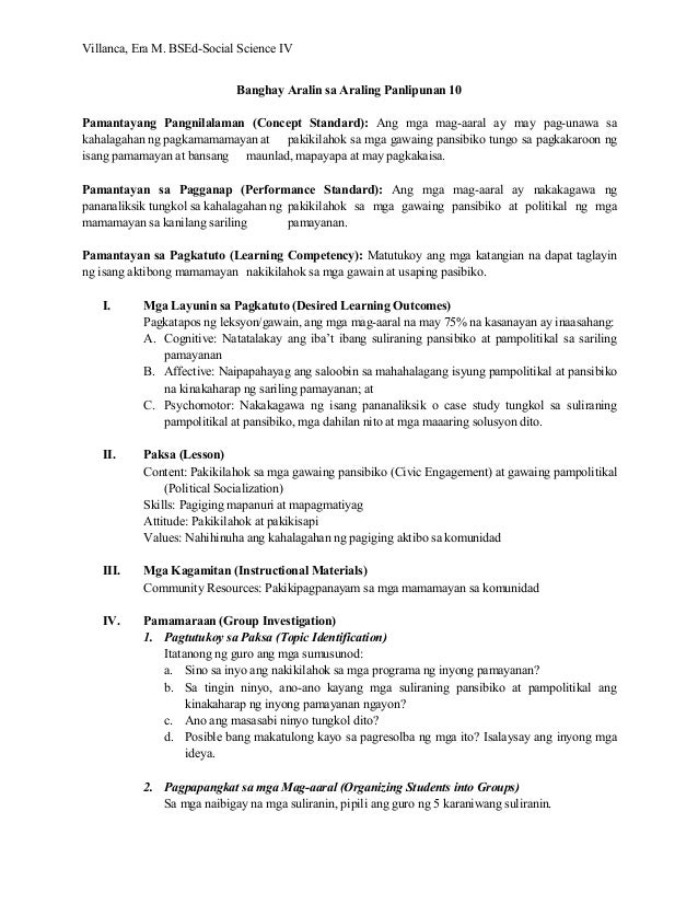 Banghay Aralin Sa Araling Panlipunan 10 Group Investigation