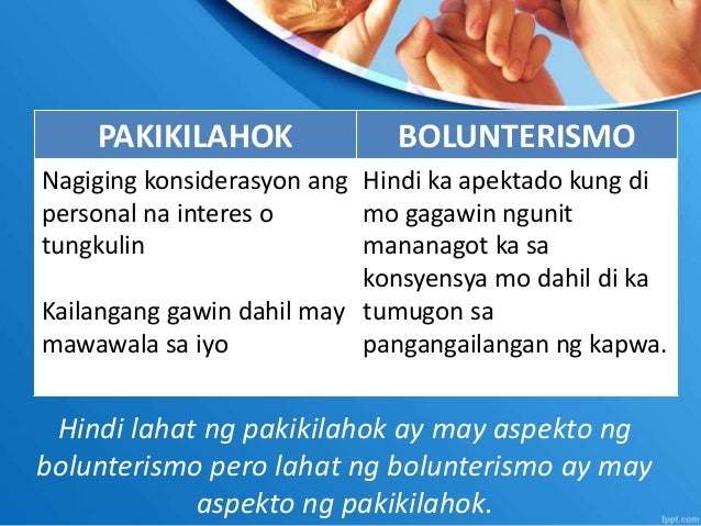 Hindi na nahihiya sa isat isa at halos ganap at walang pasubali ang pagtitiwala. Ngayon bilang panimula para sa ating linggong gawain Nais ko lamang po sanang ipaalala ang sekreto sa pag-aaral sa NEW NORMAL. Pagkakaiba ng Pakikilahok sa Bolunterismo Sa Pakikilahok nagiging konsiderasyon ang personal na interes o tungkulin.