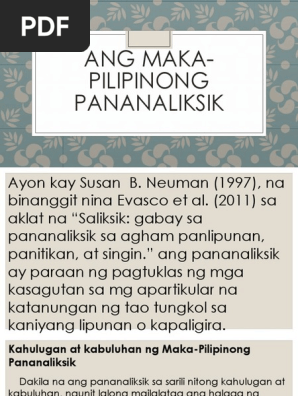 Mga Maka Pilipinong Pananaliksik Pptx Ang Maka Pilipinong Pananaliksik Gabay Sa Pamimili Ng Paksa At Pagbuo Ng Suliranin Ng Pag Aaral Ayon Kay Susan B Course Hero