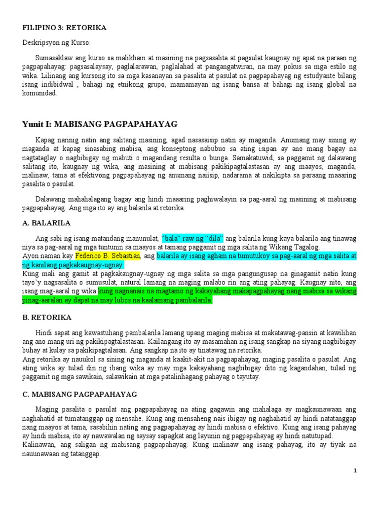 Modyul Sa Filipino 6 Aralin 1 Pdf