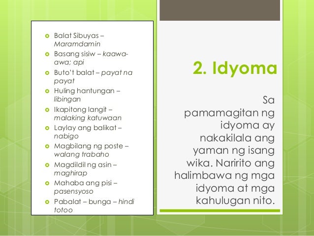 Matalinhagang Salita Sa Filipino