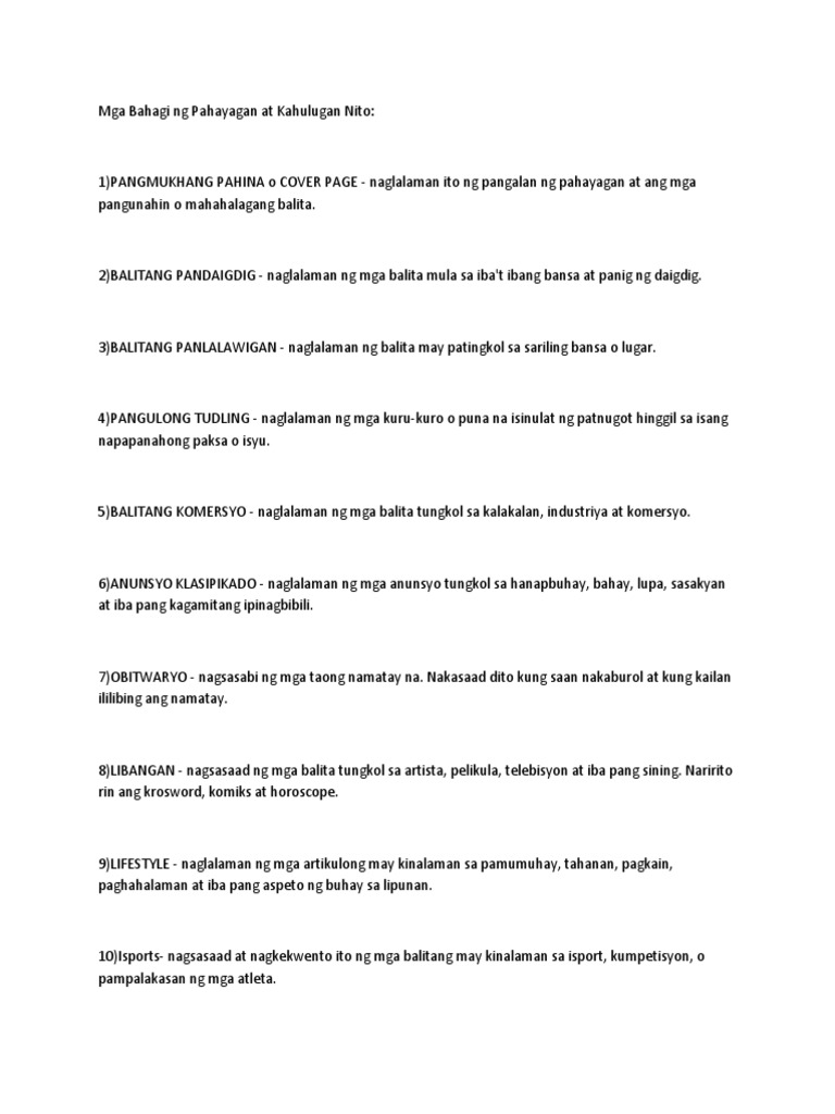 Mga Bahagi Ng Pahayagan At Kahulugan Nito Journalism News