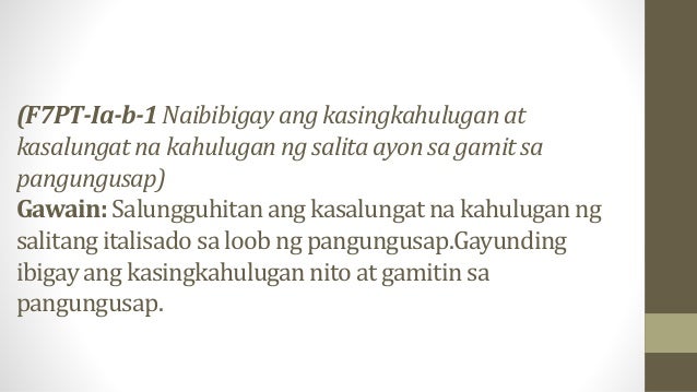 Ano ang limang kasing kahulugan ng. Ibigay ang kasalungat ng mga salitang may salungguhit sa bawat pangungusap. Ang depinisyon o katuturan ay ang pahayag ng kahulugan ng isang salita o parirala.