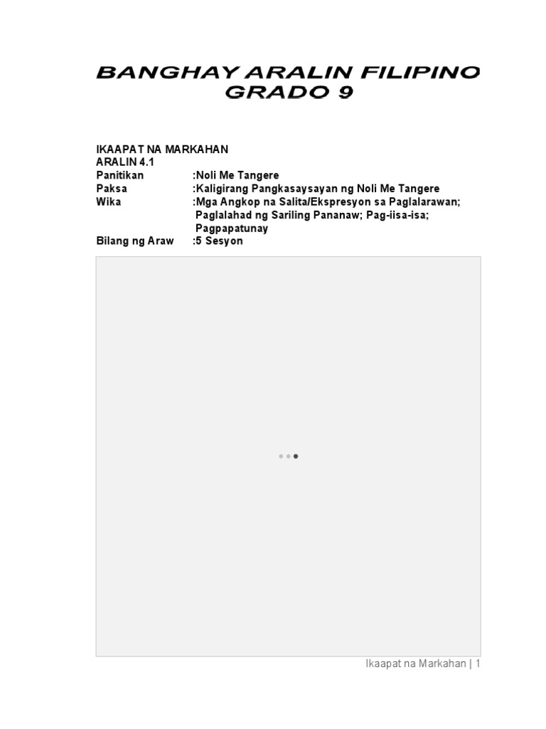 Fourth Grading El Fili Docx Banghay Aralin Sa Filipino Grado 10 Ikaapat Na Markahan Aralin 4 1 Panitikan A El Filibusterismo B Kaligirang Course Hero