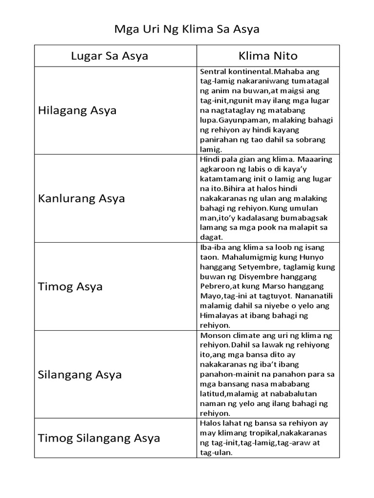 Grade 7 Araling Panlipunan Asya Uri Ng Klima Sa Asya Facebook