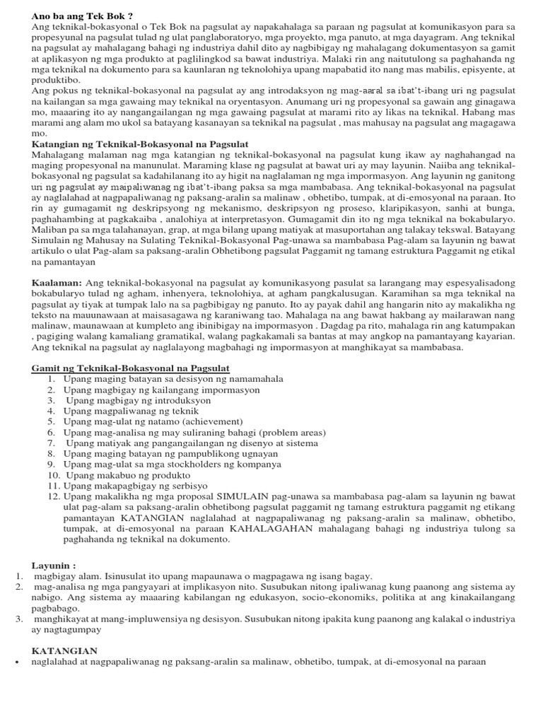 Teknikal Bokasyunal Na Pagsulat Docx Teknikal Bokasyunal Na Pagsulat Kahulugan Ito Ay Komunikasyong Pasulat Sa Larangang May Espesyalisadong Course Hero