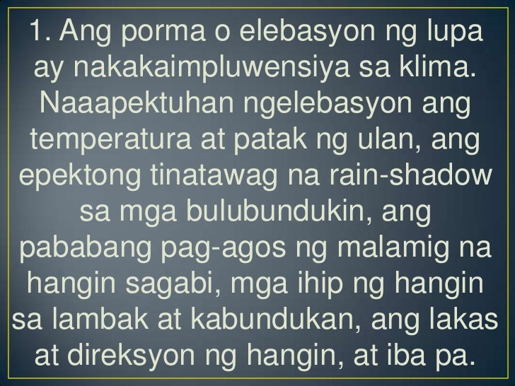 Dahil ang Pilipinas ay isang archipelago na nahahati ng katubigan at kapatagan at napaghihiwalay ng mga pulo at kabundukan hindi maiiwasang makalikha ng sariling kultura o paraan ng pamumuhay ang mga taong sama- samang. Ang malawak na sistema na kasama ang pakikipag-ugnayan ng lahat ng mga buhay na bagay kabilang ang mga halaman hayop at organismo sa bawat isa at sa mga elemento tulad ng hangin lupa araw lupa klima at kapaligiran ay tinatawag na isang ekosistema. Ang heograpiya mula sa Griyego γεωγραφία geographia literal na kahulugan.