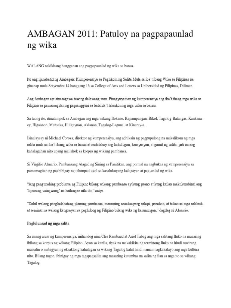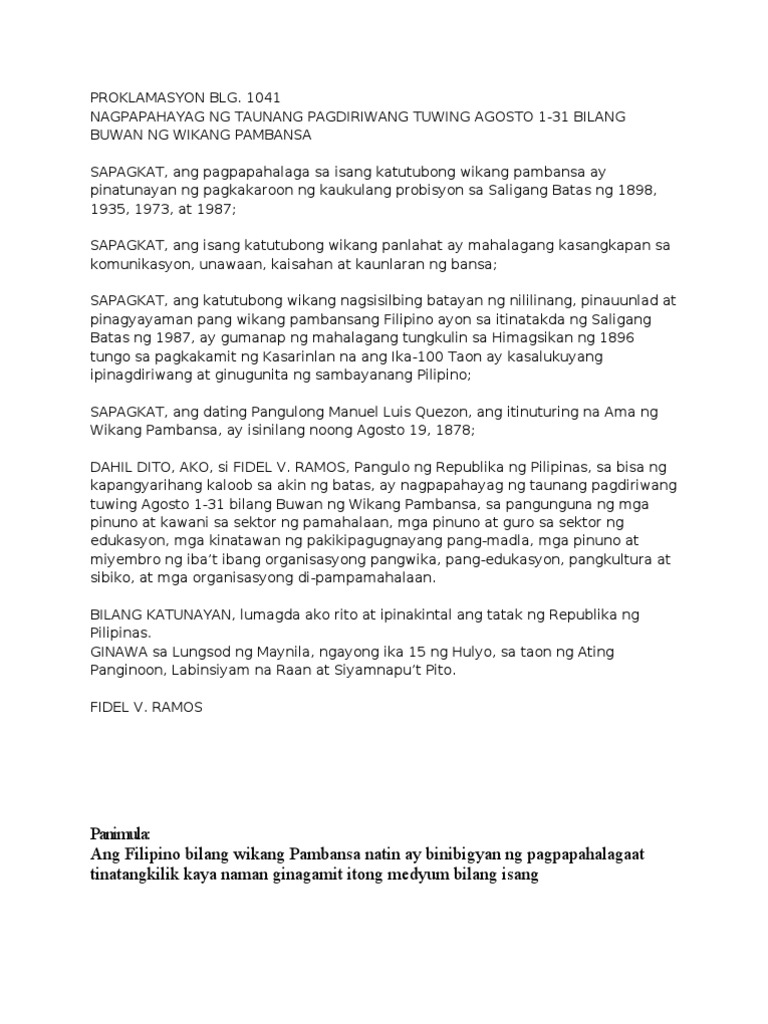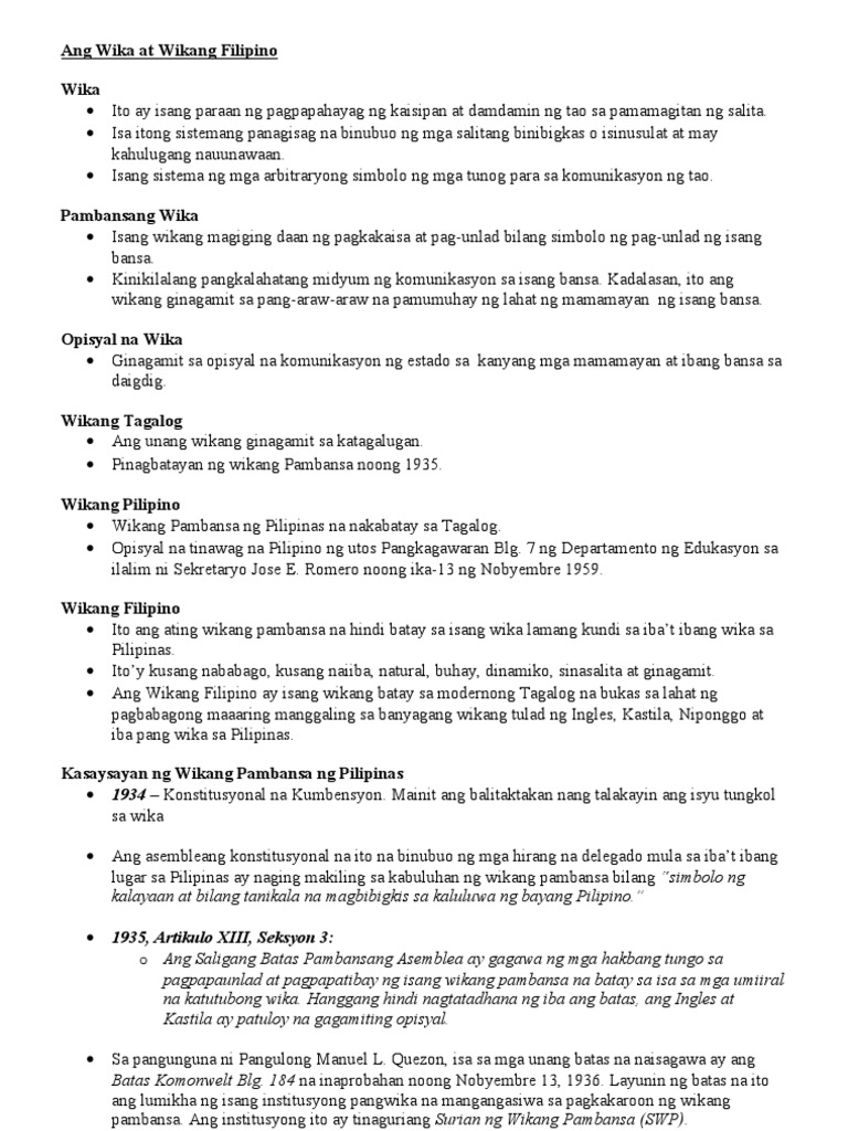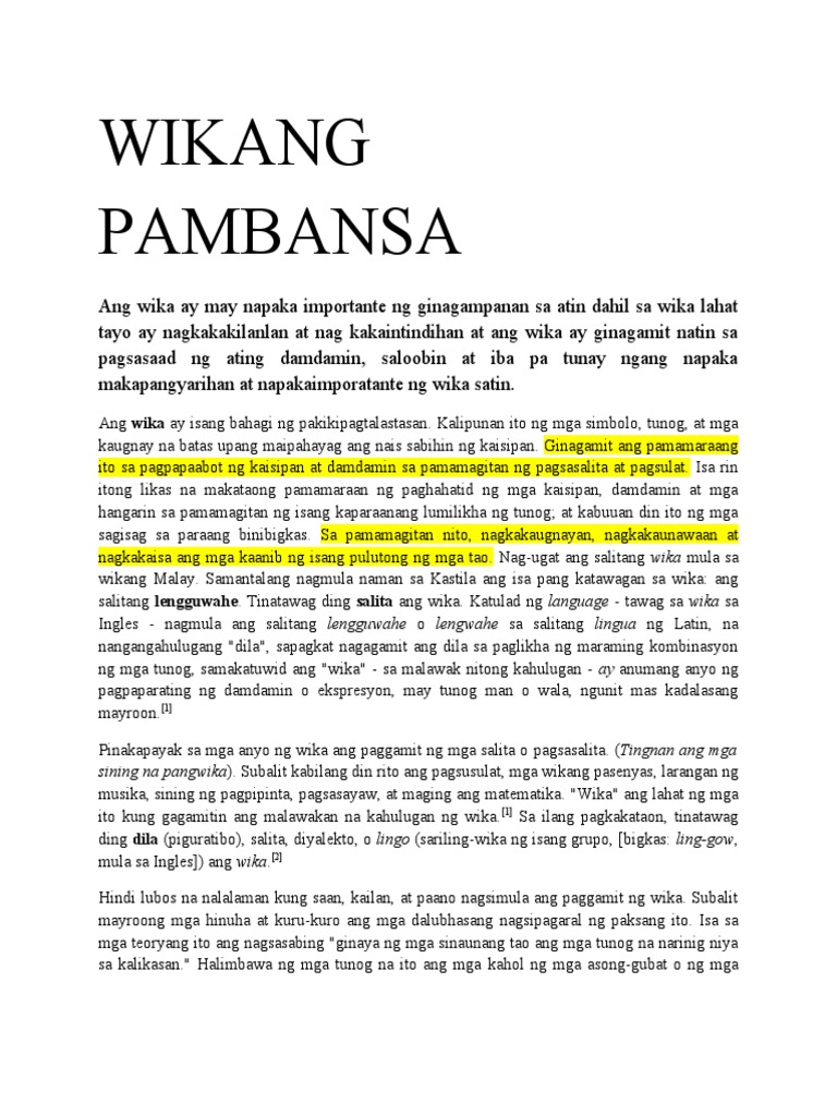 Doc Ang Wikang Pambansa Isang Reaksyon Louise Anne Academia Edu