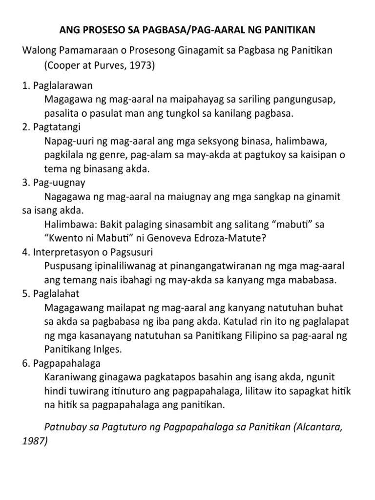 Kahulugan At Kahalagahan Ng Panunuring Pampanitikan Katangian Ng Is