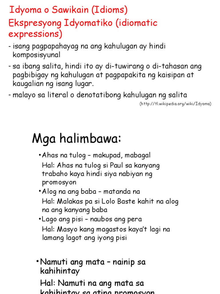 Halimbawa Ng Sawikain At Ang Kahulugan