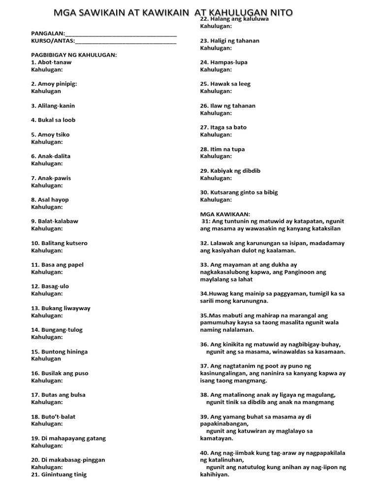 180 Halimbawa Ng Mga Sawikain At Kahulugan Filipino 30768