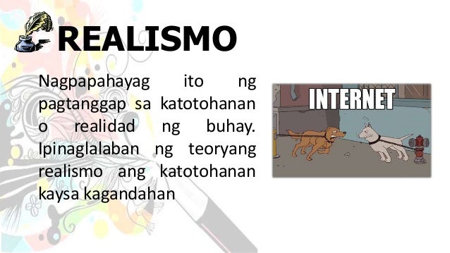 Realismo Ipinaglalaban ng teoryang realismo ang katotohanan kaysa kagandahan. Kahirapan kamangmangan karahasan krimen bisyo katiwalian kawalan ng katarungan prostitusyon atb. AMBO 2BANGKANG PAPE L3MGA IBONG MANDARAGAT 4MAGANDA PA ANG DAIGDIG 5DEKADA 70 IBAT Skip to content.