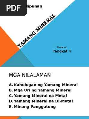 Dahil sa iyo may hanapbuhay ang maraming tao. PAGLINANG NG ARALIN Unang Bahagi. Ang katotohanan sa mga yamang mineral ay nagagamit at hindi napapalitan.