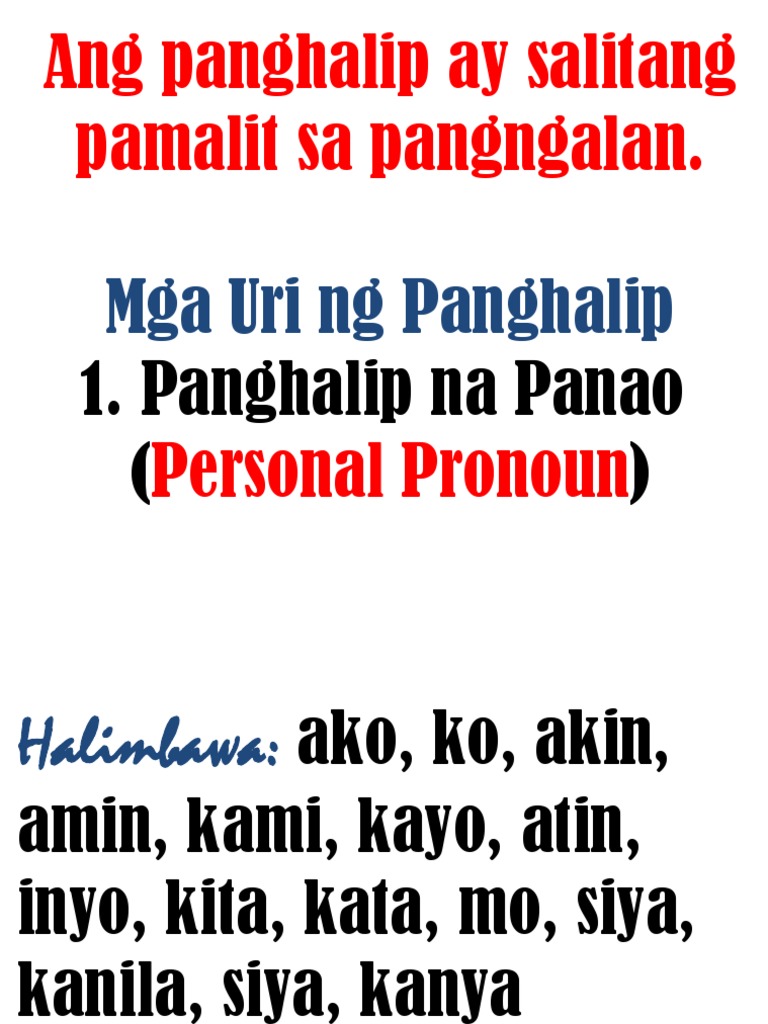 Halimbawa ng mga panghalip na panao ay ang mga salitang ako me ko kami we kayo atin inyo kita kata mo you at siya heshe. Mga halimbawa ng Verisimilitude. Ano ang pag kakaiba ng persepsiyon.