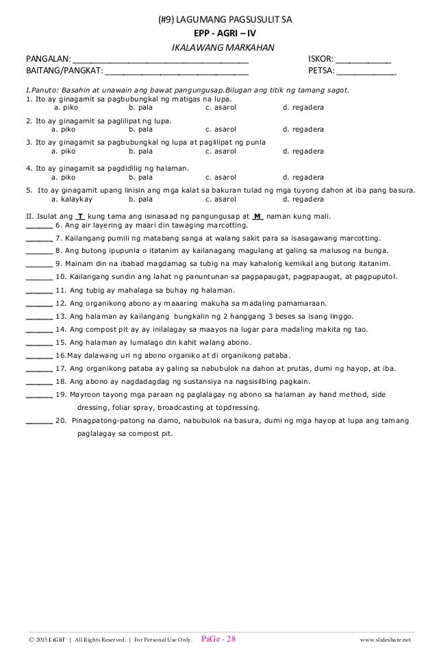 K To 12 Grade 4 Ikalawang Lagumang Pagsusulit