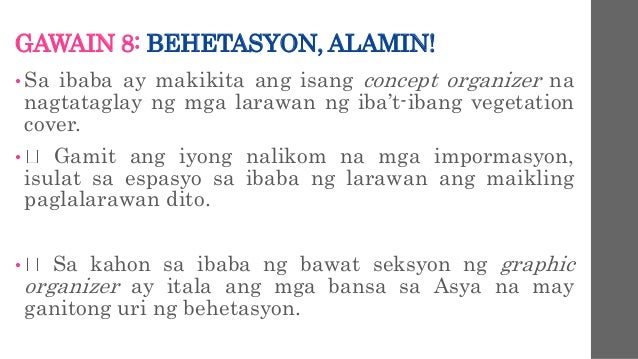 Halos 13 ng lupain ng daigdig ang sakop na humigit kumulang 44579000 km2 4. Ito ay isang paraan ng kommunikasyon na kadalasang ginagamit ng tao sa isang lugar. HILAGANG ASYA NORTH ASIA KANLURANG ASYA TIMOG ASYA TIMOG-SILANGANG ASYASILANGANG ASYA 13.